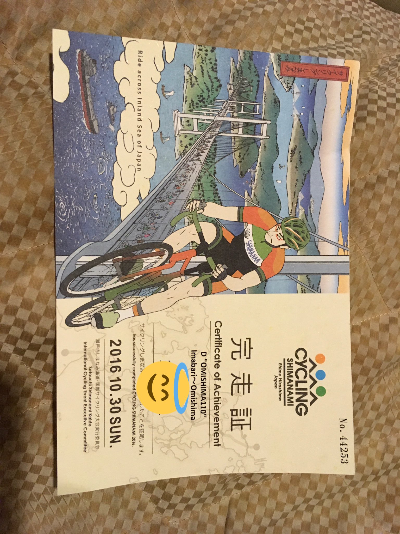 松山ー>今治 今治ー>松山。行って戻ってくる。明日も同じことをやる模様。登録、ゼッケンの受取等は前日の為松山から今治へ移動。(片道1時間程度